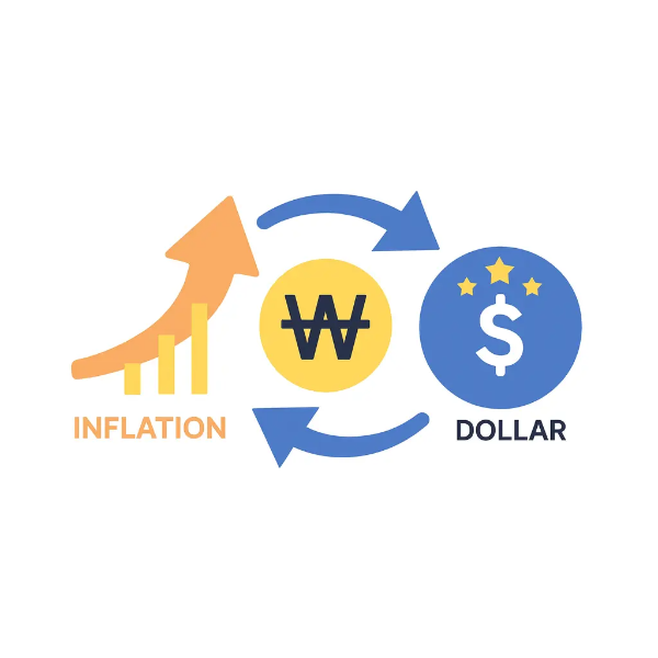 이때 달러 자산은 자산 가치를 보호해줍니다. 원화 가치가 하락하면 달러 가치가 상대적으로 상승하여 전체 자산 손실을 줄여줍니다. 예를 들어, 전 재산 1억 원을 원화로만 보유하면 인플레이션으로 실질 가치가 9천만 원으로 줄 수 있지만, 20%를 달러 자산으로 보유하면 환율 상승이 손실을 상쇄해 줍니다. 2025년 한국 인플레율은 2-3%대로 예상됩니다(한국은행 데이터 참고).