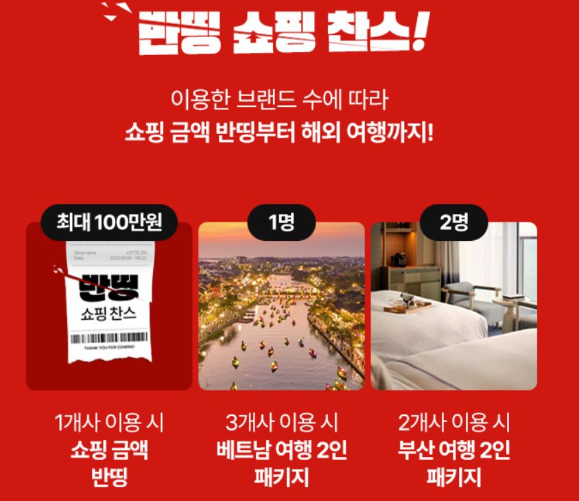 롯데 유통 계열사가 총출동한 롯데 레드페스티벌 2025! 최대 100만 원 환급부터 생필품 할인, 문화 이벤트까지 알뜰하게 즐기는 방법을 소개합니다.